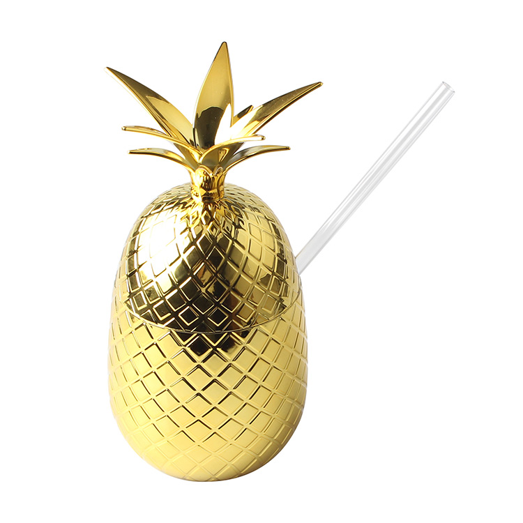 This pineapple tumbler with straw is in pineapple shape with golden coating. It’s cheaper than metal pineapple tumbler and it has good quality. This pineapple cup with straw could be made in different color and branding logo is available too. We use it with beverage or wine when bar and party.