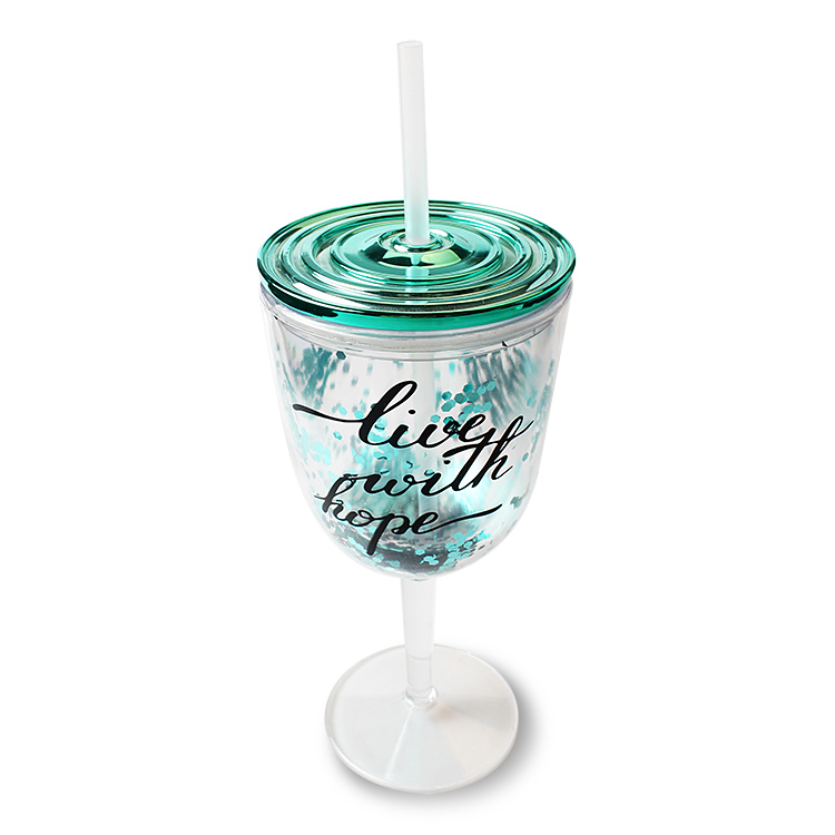 This Plastic Double Wall Glass with Stem and Cover is 12oz. We have it at 12oz, 16oz, 20oz as well. The clear plastic tumbler material is PS or AS. It can meet FDA, LFGB and EU standard requirements. We can do customized color for you. Just need sending us the pantone No. This double wall tumbler suit for bar and party.