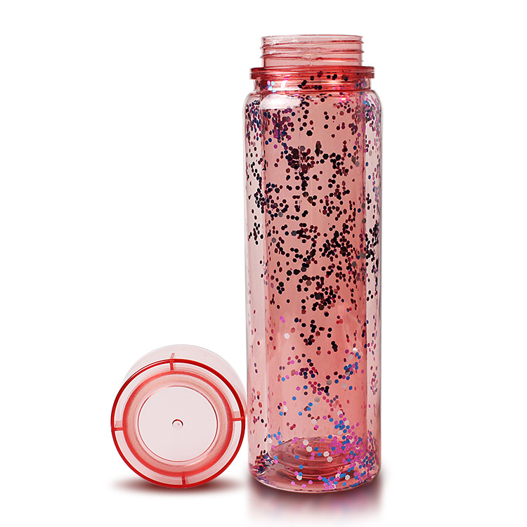 This wholesale double wall water bottle fillable with glitter has a screw lid, which is leak-proof. Make out BPA free Eastman Tritan, durable , reusable and dishwasher safe. You can put it any cup holders due to slim body design.